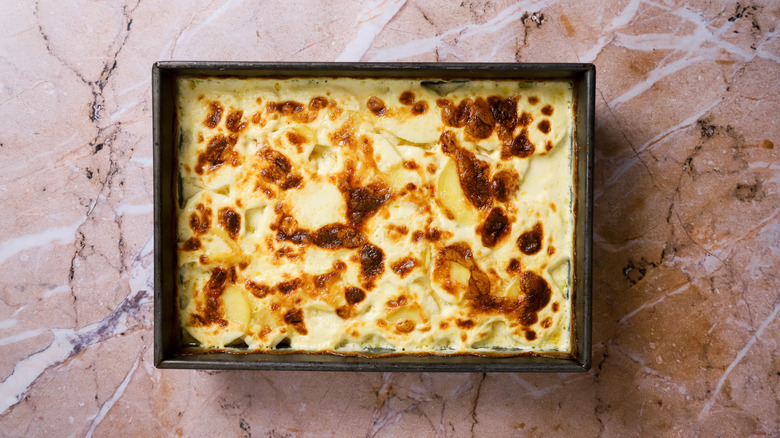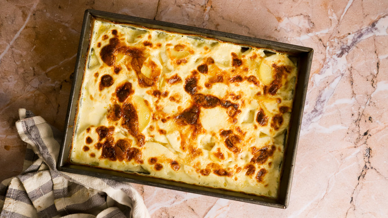 During the cooler months of the year, all we want to eat is a big pan of hot, creamy, cheesy potatoes. Whether it's a large holiday gathering or a simple family meal, baked potato dishes are a must-have. Scalloped potatoes and potatoes au gratin are both creamy, baked potato dishes, and both often have cheese. The word "gratin" refers to the browned top of a dish, often achieved with cheese and breadcrumbs.