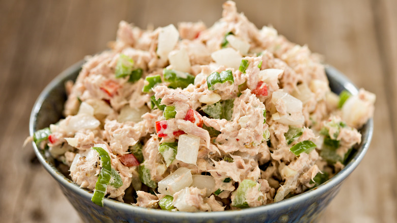 As with any fish dish, it's recommended that you incorporate a kind of brightness to bring out the milder flavors and cut any unwanted fishy aftertaste. Mustard and lemon juice are a perfect pair to do just that and, with the presence of whole-grain mustard seeds, you'll get a complimentary texture to the creaminess of the salad as well. Add a little shallot, pickle relish, and fresh parsley, and you've got yourself quite the sophisticated tuna salad.
