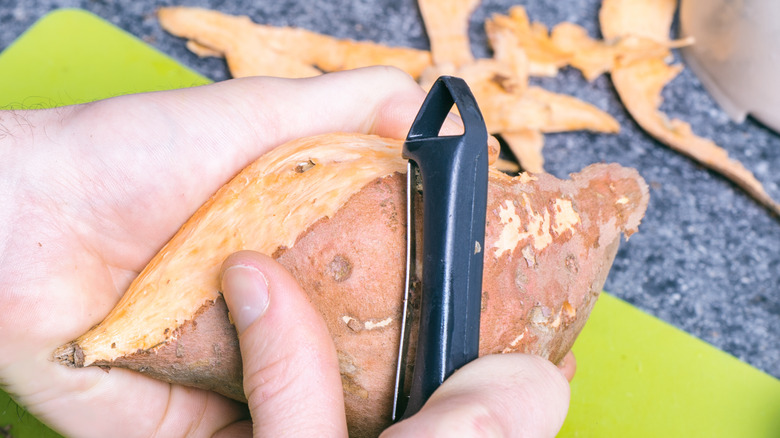 If you've ever baked a sweet potato, you may know that the skin of this tuber has a lot of culinary potential. Sweet potato skins are loaded with fiber that gives them a lot of substance, along with the perfect amount of sugar which helps when it comes to caramelization. As a result, when roasted, the skin becomes irresistibly crispy on the outside and chewy on the inside. With a texture that easily mimics the dish it is substituting, all these skins need is a little umami and a few other seasonings to transform their flavor into something that adds the punch of bacon to vegan dishes.