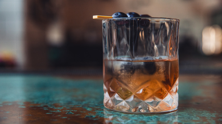 It's fun with something classic that everybody can relate to — an adult version with that rim has a lot of nice grape jelly, and then dunking the glass in a little peanut salt on top of that rim gets you that flavor of peanut and jelly. When muddling the grapes, that grape feel comes through, and we use peanut bourbon so you get that nice smokiness into the old-fashioned as well. That recipe embodies the whole pop-up: picking classics that people are familiar with, but then tweaking them, seeing how diverse and versatile peanuts can be and how delicious they can be, and staying with something that we didn't think was possible. Now, it's something that we really enjoy.
