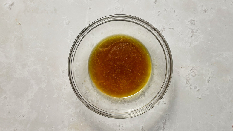 - In a small bowl, whisk together the hot honey, molasses, garlic, orange juice, and olive oil.