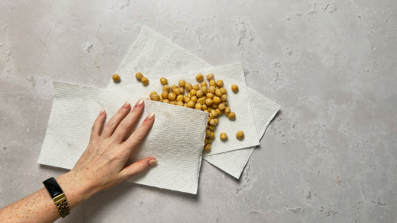 - Rinse and dry the chickpeas completely, removing any stray husks.