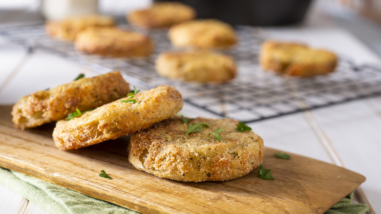 If your first thought when you hear fried green tomatoes is classic Southern cooking, you wouldn't be alone. While their prominence on menus and plates may be concentrated below the Mason Dixon line, there's more to their origin story than you might realize. It'd be reasonable to assume fried green tomatoes originated in the South and enjoyed a long standing in the local cuisine. But as is the case with so many of the food traditions we hold dear in the United States, it was a melting pot of influences and food customs — and likely immigrants — who we have to thank for bringing this dish into mainstream popularity.