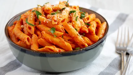 If you have leftover creamy pasta, it's best to heat it up on the stove to prevent it from drying out. The trick to reheating cream-based pasta sauce is to gradually add room-temperature cream as the temperature of the stove slowly rises. For pasta with regular tomato sauce, you can steam it to remoisten the sauce and noodles. Add a few tablespoons of water to a pan with pasta and cover it to hydrate the pasta without drenching it.