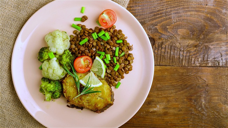 You don't have to make a big production out of your canned lentils. If you're looking for a simple, out-of-the-ordinary side dish, lentils are a handy way to add protein to a plate. They're also good and filling when you're tired of the same old mashed potatoes or rice. You can use canned lentils with any dish, but they're especially good with main dishes you'd ordinarily serve with baked beans, refried beans, or peas (they are all legumes after all).