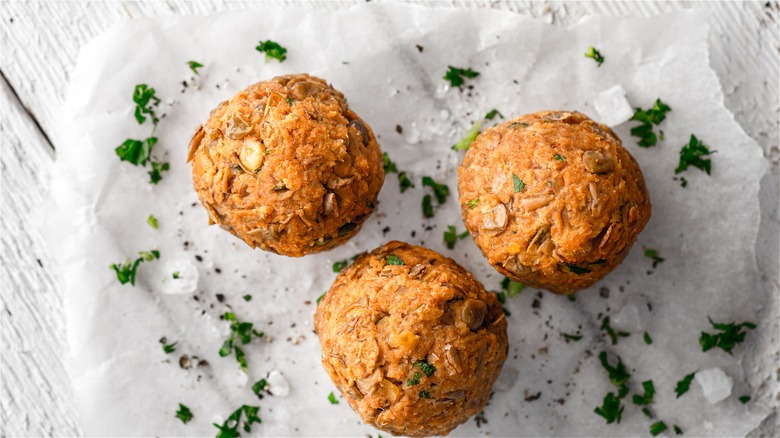 When planning a party, you always want to make sure vegetarians have plenty to eat and feel hungry from nibbling nothing but vegetables all night. A lentil meatballs recipe ensures that everyone has something hearty to eat. Canned lentils speed up preparation time, which everyone can use more of when they're playing host or hostess. Serve lentil meatballs with a tangy dipping sauce of some kind, like barbecue sauce or a zesty tzatziki.