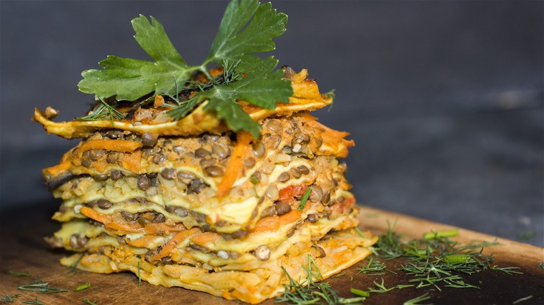 You know by now that there aren't many dishes that can't be enhanced by canned lentils. They're useful anywhere you want a meaty texture but a taste without meat or when you just need to cut down on the time it would take to brown some meat. Lentil lasagna is yet another lentil-based twist on a classic dish. You can incorporate drained, canned lentils into your regular recipe, substituting them for ground beef and keeping all of the other ingredients the same.