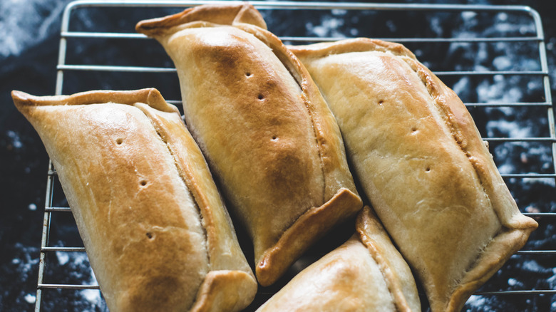 Now popular throughout Latin America and the Philippines, the pocket-like pastry owes its New World ubiquity to Spanish colonists. And while Argentinian and Venezuelan empanadas may be more internationally well-known, the dish is also a beloved favorite in Chile. In the South American nation, the most common take is called empanada de pino, a pastry filled with ground beef, onion, boiled egg, and olives. However, it's not the only variant: It's worth seeking out the pequene. Made with an aromatic slow-cooked onion mixture flavored with cumin and a local paprika known as aji de color, this more obscure vegetarian version is on the rise — here's why.