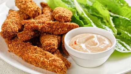 If you just want normal chicken strips, get creative with the dipping sauces. Scoop up a freshly made mango salsa with the chicken strips or whip mayonnaise, sour cream, blended chipotle peppers, and lime juice together for a creamy, spicy chipotle ranch dressing.