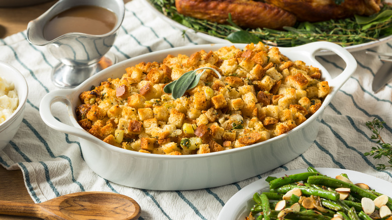 Tradition is nice, but sometimes it can become an obstacle to ease. Such is the case when it comes to traditional stuffing cooked inside the turkey cavity. A lot can go wrong with this method, from an overdone bird in the name of cooked stuffing and undercooked turkey drippings spoiling your stuffing to turning the appetites of any vegetarians at the table. Don't worry, though; help is on the way.