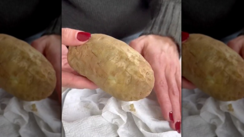 Enter Nicole Jaques and the wave of TikTokers with a genius hack. Instead of wrestling with the peeler post-cooking, they suggest scoring the potato in a full circle before boiling. Once fully cooked, the peel virtually slides right off, and you've got both more time and a new magic trick on your hand. However, be sure to be careful because these boiled potatoes can be quite hot to the touch. Always ensure you're protecting your hands to avoid any burns when using this method. A game-changer, this technique not only saves time but also makes the whole process a breeze.