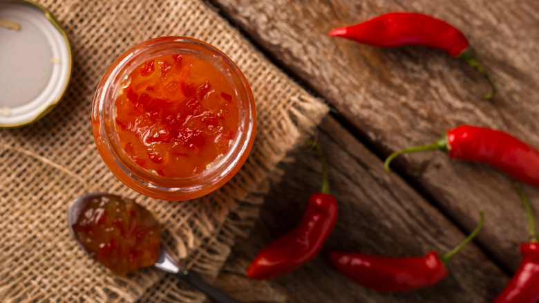 Just because a sipper is adventurous doesn't mean they aren't discerning. The amount of jelly you'll use depends on how hot you want it, but one generous spoonful per drink is a solid jumping-off point. To paraphrase the Beastie Boys, slow and low is the way to go here. The key to building any successful cocktail is balance, and when creating spicy drinks, overdoing it on the spice can ruin the entire profile. The presence of alcohol actually amplifies the peppers' spiciness — so avoid scrapping batches and incorporate your hot pepper jelly little by little.