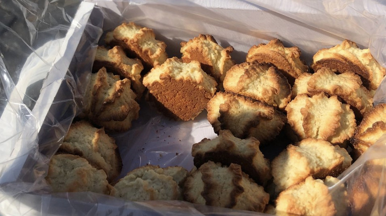 The Long Road Home described their quest as such, and the cooking-buying experience ended up being one of the more memorable moments of their Spanish adventure. The blogging duo wrote about their glee making their way to a wooden door to enquire about the baked treats before being let inside the monastery's walls. Inside, hallways led to a courtyard and a windowed turntable where a printed menu outlined the variety of cookies available for purchase. While this globe-trotting couple got cookie-buying tips from Rick Steves' app for Europe, we're here to give you the details should you ever find yourself wandering the streets of Madrid craving freshly baked goods.
