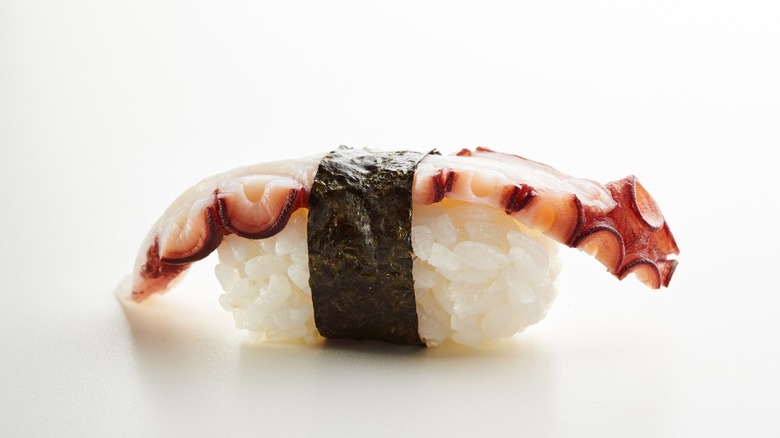 For your at-home experience, frozen octopus is getting easier to find. Vacuum-sealed and raw, you will need to decide how you want to proceed. Octopus (tako in Japanese) can be served raw, but you can also lightly boil it before adding it to sushi. However, don't tackle this if you're not a super-experienced home chef. As you might know, octopus can be awfully chewy without proper preparation. Japanese chefs will often massage the meat with salt and bits of daikon radish before gently boiling; this helps tenderize it while also bringing out the delicate flavor. It is possible to find octopus prepared specifically for sushi, generally online, so if you're busting to give it a go with the troublesome prep, fire up that search engine.