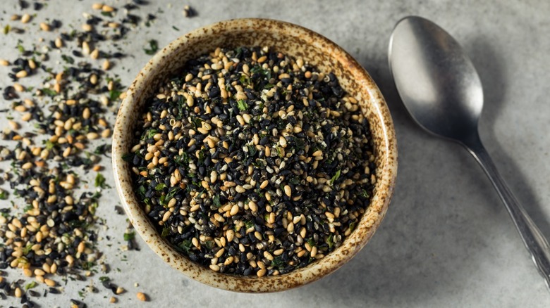 Made to sprinkle over rice, it's also one of the ingredients we suggest to elevate your roasted vegetables, so it's no surprise that it can be used to add a pinch of flavor to your sushi. It can also be added to the rice while you're seasoning it, sprinkled on your fillings, or used to garnish inside-out rolls. Use it anywhere that could use a little extra bit of umami and color, but don't go overboard — remember that sushi is all about balance, after all.