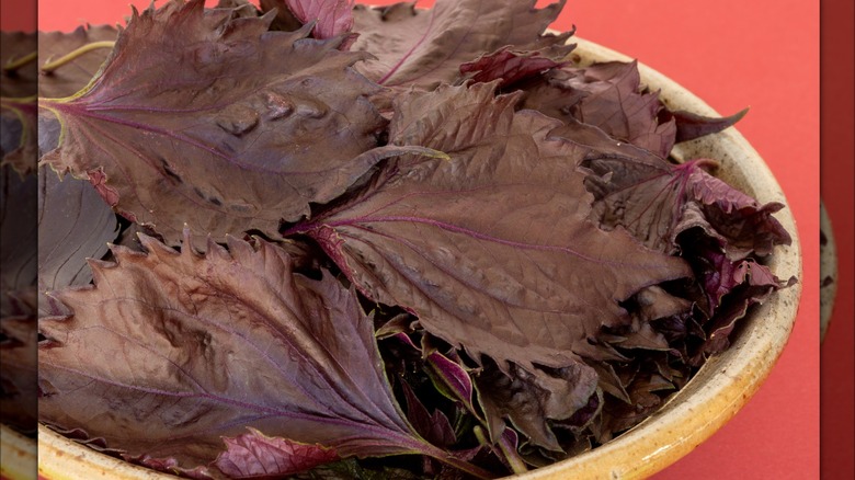 Shiso is used in so many Japanese dishes that we'd never frame it as a sushi-only ingredient. But if you're looking to upgrade anything you're whipping up, this should definitely be on your radar. Commonly called perilla or beefsteak plant stateside, shiso is widely used in Asian cooking for flavor but also for its ability to give a gorgeous hue to foods like plum vinegar. Shiso comes in both purple and green varieties; both are widely used in Asia, where green is more palatable, but purple is prized for the color. Depending on where you are, you might be able to grow it if you can't buy it fresh. However, even a sprinkle of dried shiso will do.