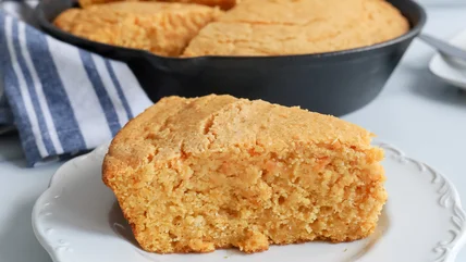 Morone feels that this cornbread is pretty versatile, telling us, "You can really serve this as a side dish for any meal, or just eat it as a snack." You can make it to accompany a casual cookout or picnic of barbecued ribs, pulled pork, or chicken, or serve it for a more formal occasion or holiday. Morone feels it would go well with Thanksgiving turkey, but we think it would also complement Easter ham or Christmas roast beef. Pro tip: Cook some extra sweet potatoes to make a sweet potato pie for dessert.