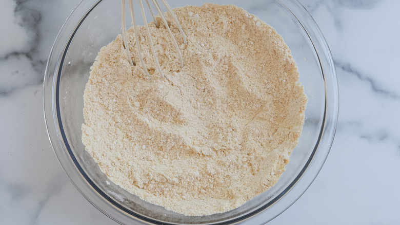 Add the dry ingredients to the bowl with the sweet potatoes and mix until just combined.