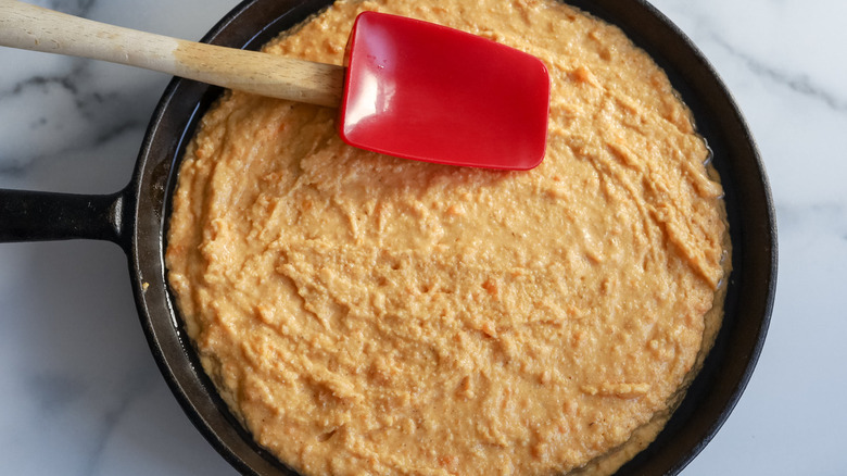 Although honey (and sweet potato) gets a shout-out in the recipe's name, Morone feels that maple syrup is the real special ingredient. In her opinion, "Maple goes so well with sweet potatoes and helps to bring out the sweet potato flavor." As sweet potatoes are naturally sweet (hence the name) and you're adding both honey and maple syrup to the batter, you might think that this cornbread would be super-sugary, but Morone notes, "The cayenne pepper also gives it a touch of heat." She does say, though, that if you don't care for this spice, you can leave it out