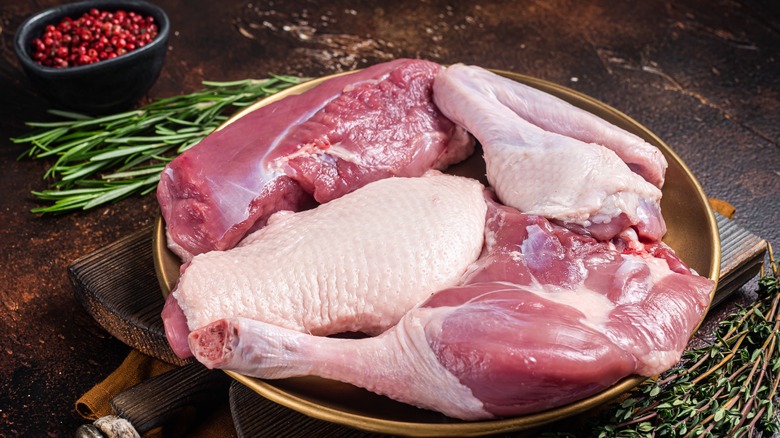 It's easy to think that roasting a duck and roasting a chicken are one and the same, but the same cooking methods cannot be equally applied to these two completely different birds. A perfect example is prepping their respective skins: When roasting chicken, giving it a good coating in oil or butter is one of the keys to a crispy and flavorful skin. With a duck, however, you don't need to add any oil to the skin before roasting — its structure makes adding fats unnecessary.