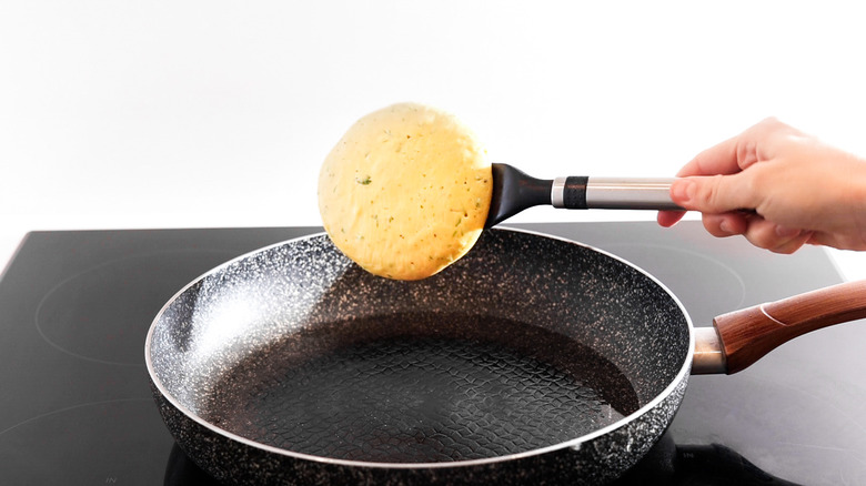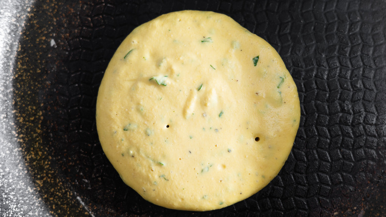 - Set the chickpea pancake aside and repeat the process with the remaining mixture.