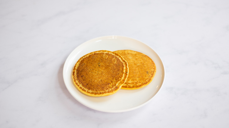 - Add a scoop of batter to the pan to create a three inch pancake.