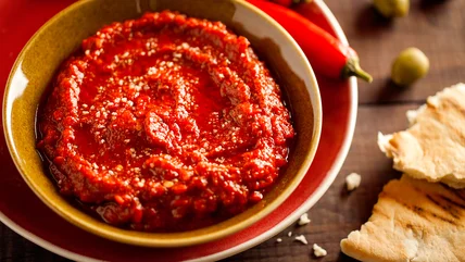 Calling all hot sauce fans. It's time to rescue dinnertime from the bland zone with one tomato paste substitute: harissa. If you've never worked with it before, harissa is a spicy, smoky, peppery paste made from chile peppers, garlic, and olive oil. It's also flavored with various spices, including paprika, caraway, cumin, coriander, mint, or even rose petals. Harissa brings a one-two-punch of the inherent sweetness from the roasted red peppers alongside the euphoria-inducing capsaicin heat of the chiles.