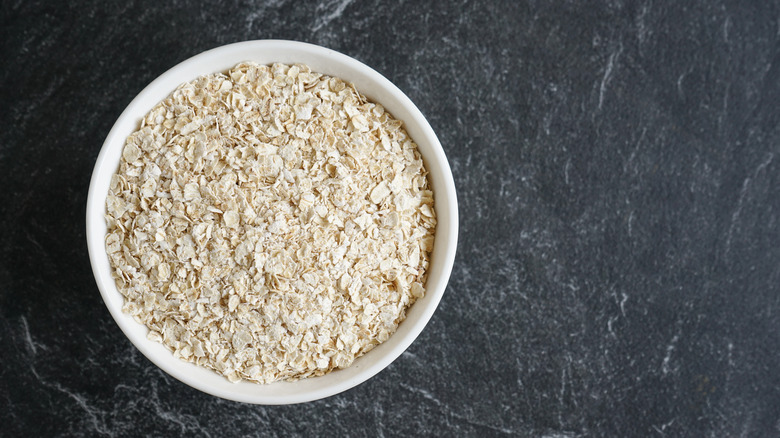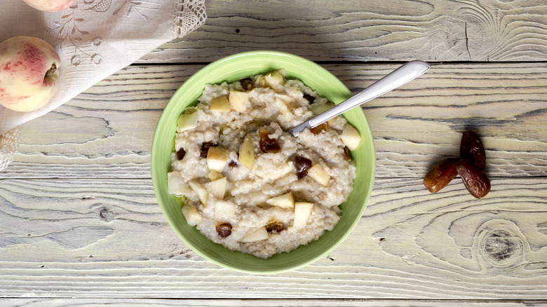 Of course, you don't have to use cow's milk if that's not your preference — pretty much any kind of milk is going to up the flavor ante more than plain water will. Oat milk is an obvious choice, but you could also use cashew milk if you want that creamy texture without using actual dairy. Soy milk is also a good option if you're trying to get more protein into your diet, and even if you don't usually like how soy tastes, the oats will cover up that flavor.