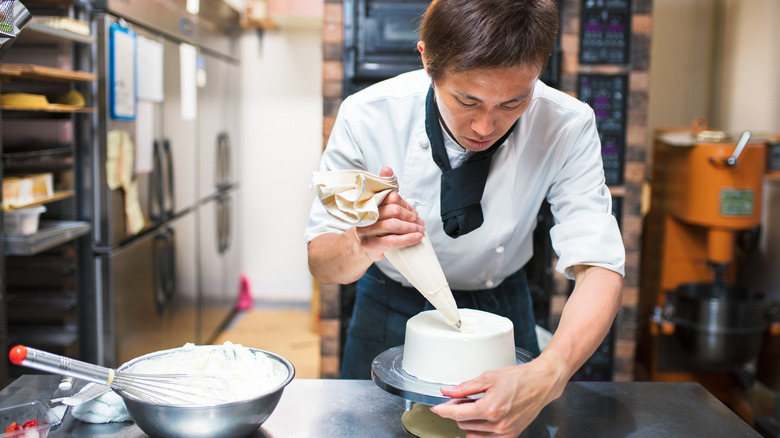 When you're aiming for aesthetic perfection, decorating cakes can be one of the more painfully challenging tasks to undertake in the kitchen. Even after you've let a freshly made cake cool completely, slathering your baked goods with colorful icing and frosting can end up in a crumbly, messy affair. Thankfully, we have tips from professional chefs and bakers like Mary Berry to steer us in the right direction so that our next cake decorating attempts result in photo-worthy presentations instead of shameful-looking desserts.