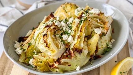 Roasting vegetables in the oven caramelizes the natural sugars, crisps up the edges, and tenderizes the centers. As for cabbage, it enriches its flavor and texture, bestowing a tender yet chewy consistency, bursting with intense vegetal savoriness and a bitter finish. Roasted red cabbage is peppery, fibrous, and crunchy, while roasted green cabbage becomes soft, nutty, and slightly sweet. A lemon sauce will bring a vibrant tanginess to brighten cabbage's earthy and savory flavors while tempering the bitterness and peppery bite.