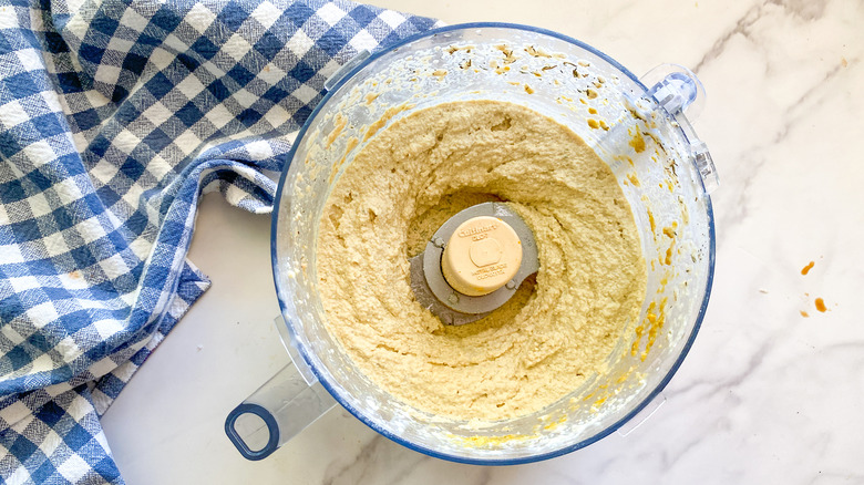 Rather than reaching for a bottle of JUST Egg and calling it a day, Hahn opts for a combination of homemade cashew cream and tofu to replace the milk and eggs. The two ingredients are added to a food processor with nutritional yeast, soy sauce, onion powder, turmeric, thyme, and black salt, also known as kala namak — an ingredient she uses for its "eggy" flavor. Spooned into your choice of crust and baked in the oven, the finished result comes out just as custardy are traditional quiche.