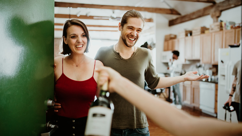 Ask your hosts directly if there are any ingredients or dishes that you can bring to the party or whether there is a certain kind of wine that might complement the planned meal. "Sometimes I look at a wine that's come with a guest and hide it in my closet," Stewart admitted to Food & Wine, adding that hosts do not have to uncork any bottle that is brought by guests.