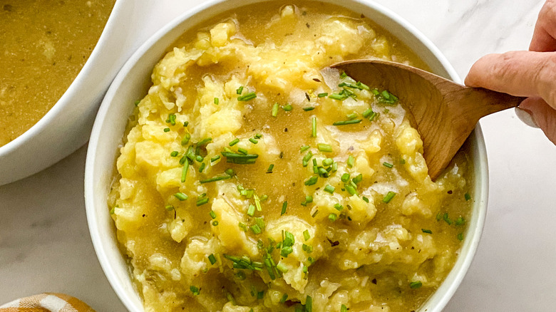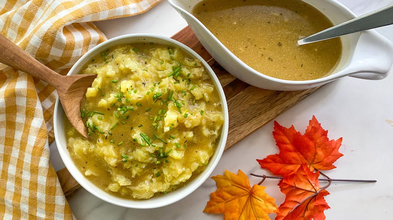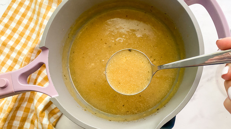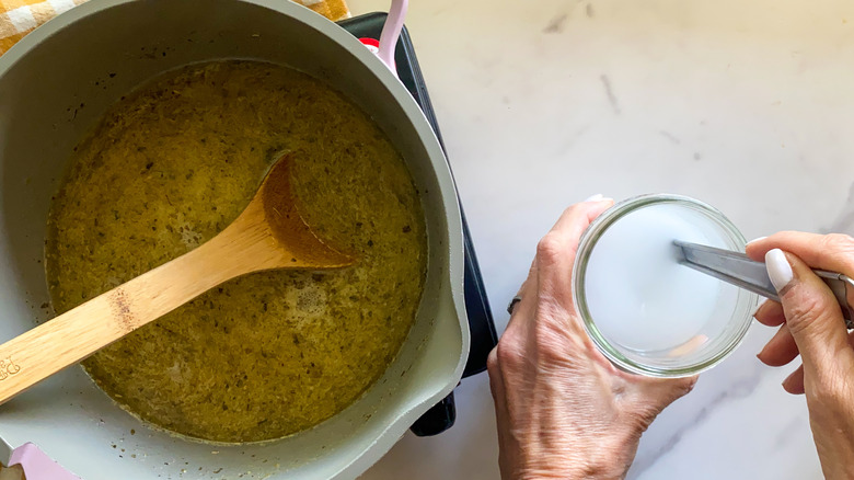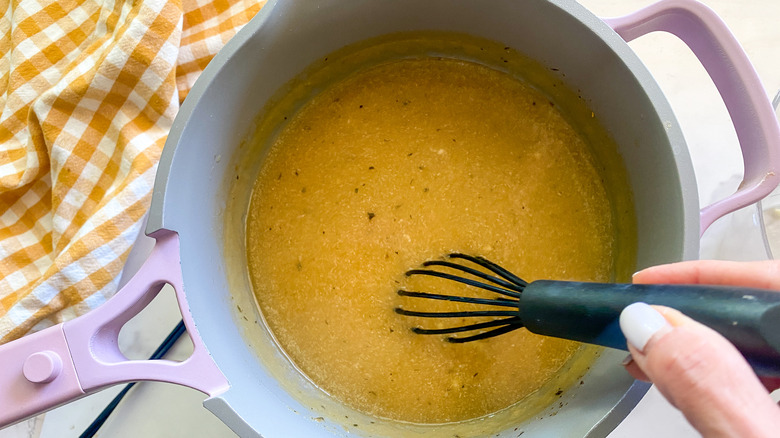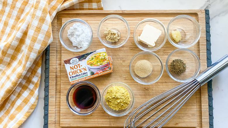 The rest of the ingredients are pretty basic. Pick up some vegan butter, garlic, tamari soy sauce, nutritional yeast, onion granules, dried mustard, poultry seasoning, and potato starch. "You can substitute corn starch, or arrowroot powder for the potato starch but my first choice is potato starch here," Hahn shares. "I also prefer tamari soy sauce because it is richer in flavor and less salty than standard soy sauce. We will already have quite a bit of salt in the bouillon. Plus, added bonus — it's gluten-free," Hahn goes on to say.