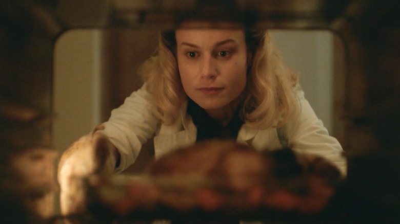 As watchers of the first few episodes of "Lessons in Chemistry" know by now, Brie Larson's portrayal of chemist and cook Elizabeth Zott is engrossing. Larson deftly captures a character who is more layered than mille-feuille, and she's especially powerful in moments of stoicism, grief, and joy. Some of the instances in which Larson best brings Zott to life are those when her character is sharing or serving food. According to Courtney McBroom (and with respect to the talent of Larson), very few of those particularly happy food moments are acting.