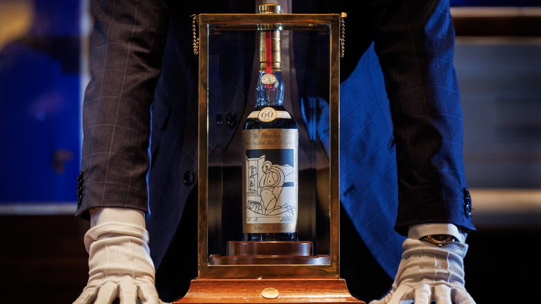 A previous bottle of the Macallan sold by Sotheby's in 2019 fetched 1.5 million pounds — or roughly $1.9 million American — at the time. And that wasn't an outlier, either, as each of the last three times the Macallan 1926 has been auctioned off it set the world record for the priciest bottle of liquor. This new bottle is even more unique than those of past auctions, being the first one to ever be "reconditioned" by Macallan, which involved replacing the cork and capsule, repairing the label, and testing a sample for authenticity.