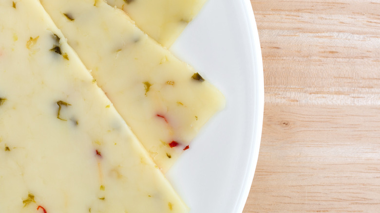 While the dynamite flavor combination steals the spotlight, don't underestimate the appeal of pepper jack's texture. Its open, melt-in-your-mouth quality makes it an ideal companion for grilled or toasted sandwiches. We recommend adding fresh ingredients like crisp lettuce, succulent tomato, and creamy avocado to your creation. These additions offer a refreshing contrast to pepper jack's heat, while still allowing the peppers to shine through. When it comes to bread, opt for something sturdy, like ciabatta or a rustic loaf, that's able to hold up to the bold flavors in this sammy.