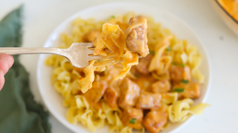 - Serve the pork and sauce over the egg noodles and enjoy. Top with parsley if desired.