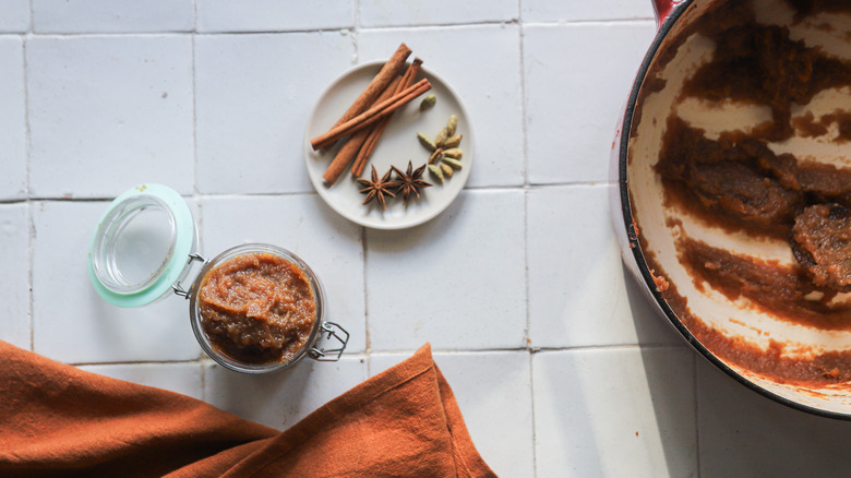 You can also incorporate apple butter into other things. Stir it into oatmeal or yogurt to add layers of flavor. For something more savory, consider using it as a glaze for grilled pork or chicken. It can also be used in desserts, like pastries, cakes, and pies. Apple butter turnovers are a common find, and they can also be swirled into bread, rugelach, or danishes. Whichever way you use it, this spiced apple butter is sure to be a nice addition to any meal.