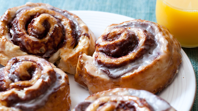 Your apple butter cinnamon rolls will taste especially delicious when topped with a decadent cream cheese glaze. You can also boost the apple flavor by adding par-cooked, seasoned apple pieces to the filling before rolling it up into a log. It's essential to cut these apples into tiny pieces and to cook them enough beforehand so you won't have to worry about raw apples in your pastry.
