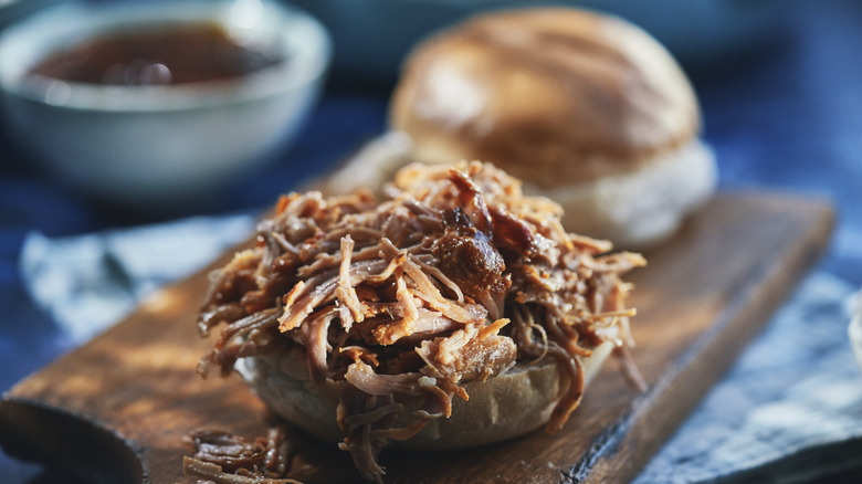 You're going to want to add the apple butter to the slow cooker with your other pulled pork ingredients like Worcestershire sauce, spicy mustard, and honey. Be sure to save some of your extra sauce for serving and cover the pork shoulder roast with the rest. If you want to infuse more apple flavor into your meat, try adding an extra dose of apple cider. We love that this dish will keep for several days in the fridge, so you can enjoy your recipe for lunch or repurpose it for something else, like an upgraded macaroni and cheese.