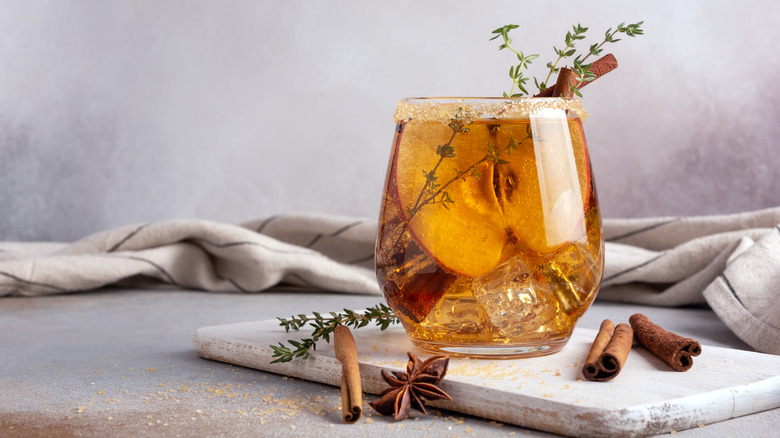 To make these seasonal beverages, add a tablespoon of apple butter to the bottom of the champagne flute and pour in a few ounces of prosecco. Give your beverage a quick stir and garnish with cinnamon before serving. If you're looking for a non-alcoholic option, you can always substitute the prosecco with ginger ale or sparkling cider. You can also make your drink extra special by dusting the rim of the glass with cinnamon sugar and adding an orange wedge garnish on top of the glass.