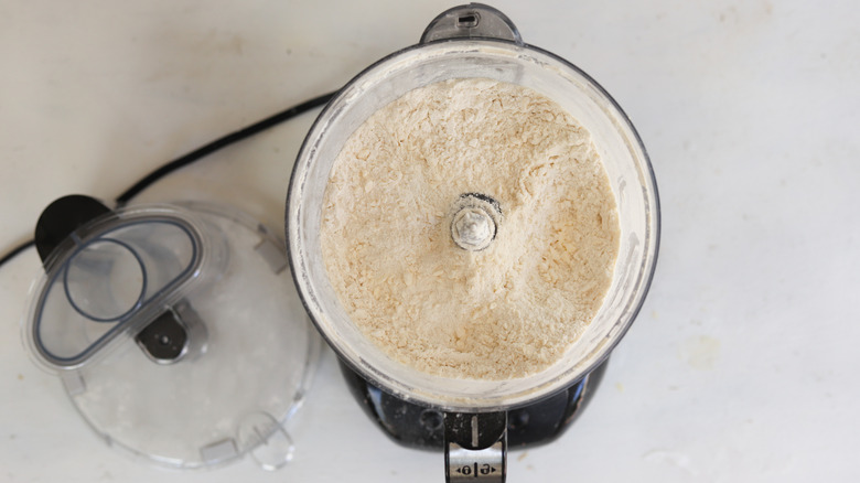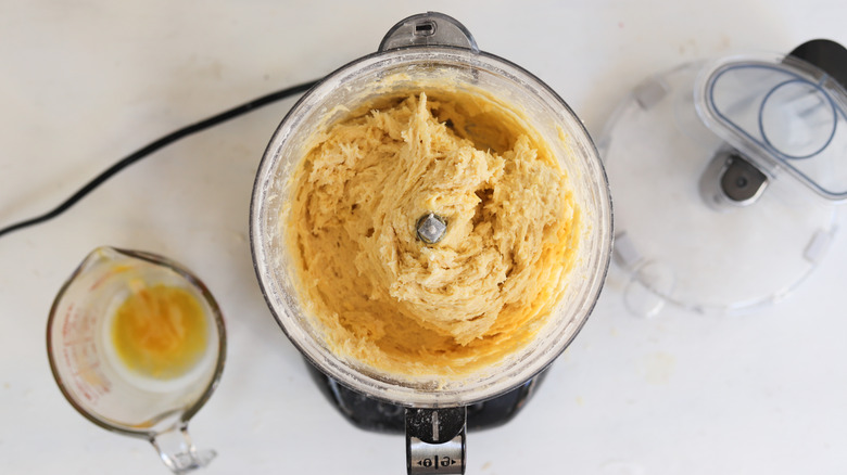 - Add the yeast mixture to the flour mixture and pulse until a dough forms.
