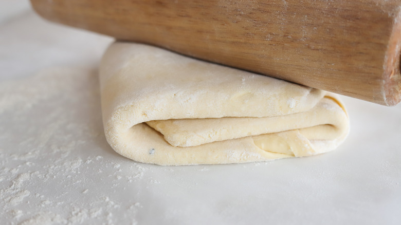 - Repeat this folding and rolling process 3 more times, ending up with a ¼ inch-thick sheet.