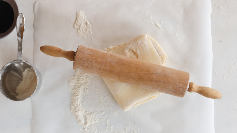Store-bought biscuit dough is similar and can also work as a vegan puff pastry substitute. Just check the ingredients list to confirm it's free of animal products. If you have a go-to pizza dough recipe (or a favorite premade version from the supermarket), this can also be used to wrap the witch hat pastries. The consistency will not be as flaky and buttery, of course, but it will still be delicious and pillowy — not to mention a little bit quicker to make.