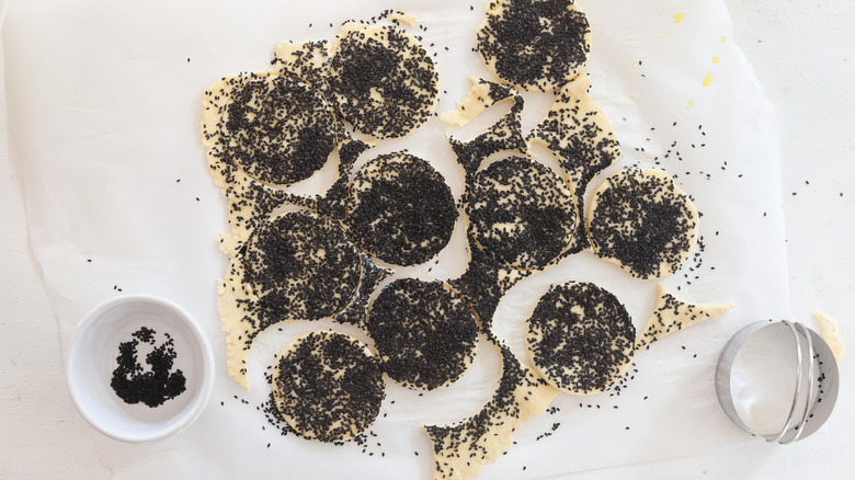 Finally, to add even more flavor to the pastry itself, you could use everything bagel seasoning in place of the black sesame seeds. This gives them an onion and garlic flavor that packs a nice punch. Just make sure you use a generous amount so that the hats still look more black than white.
