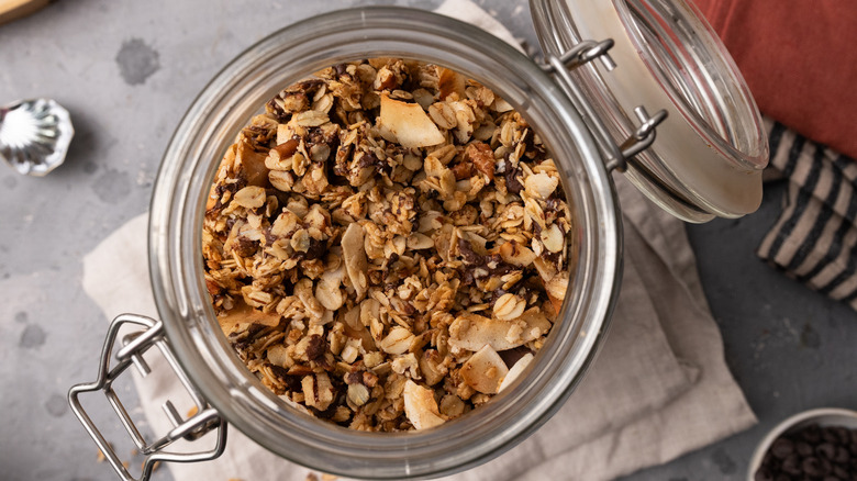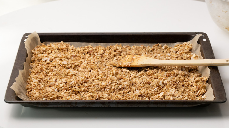 Good, gluten-free breakfast cereals can be hard to come by. Oftentimes, they are overly processed or overly sweet, and they can be lacking in both flavor and nutrients that will help you start the day well. And, the ones that do tick all the right boxes don't tend to be friendly on your wallet. Luckily for us, it's super easy to make your own granola. And, as long as you don't eat it all in one go (trust us — you'll be tempted!), you'll have breakfast sorted for the rest of the week.