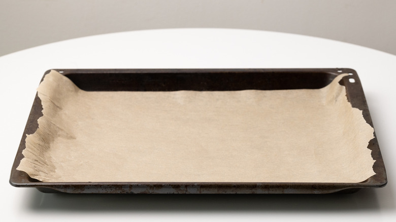 - Preheat the oven to 300 F. Prepare a large baking tray by covering it with parchment paper.