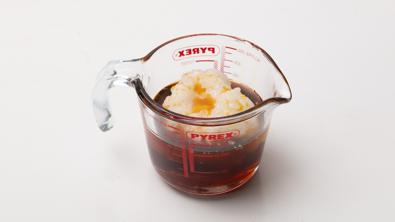 - In a microwaveable jug, combine the coconut oil and the maple syrup. Heat in 15-second increments until the coconut oil is fully liquid.