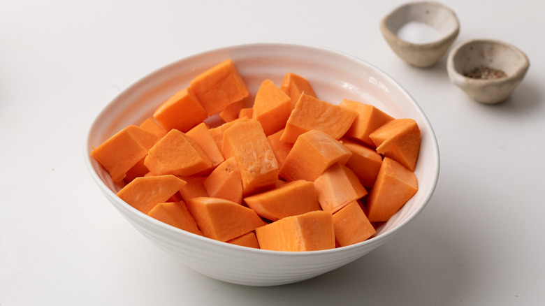 - 2 medium sweet potatoes, peeled and cubed