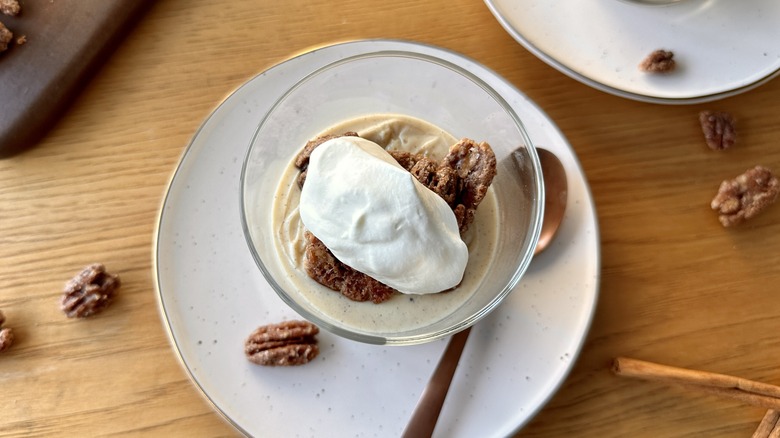 The candied pecans, made with only pecans, maple syrup, and a hint of flaky sea salt, are easy to pull together and a garnish you don't want to skip out on. "Once you've made these pecans once, you'll be using this technique for candied nuts on charcuterie boards, desserts, salads, and more," Rosenhouse says. Heavy cream and a little confectioners' sugar make up the whipped cream, but you can also skip the whipped cream entirely, or sub in store-bought whipped cream in a pinch.